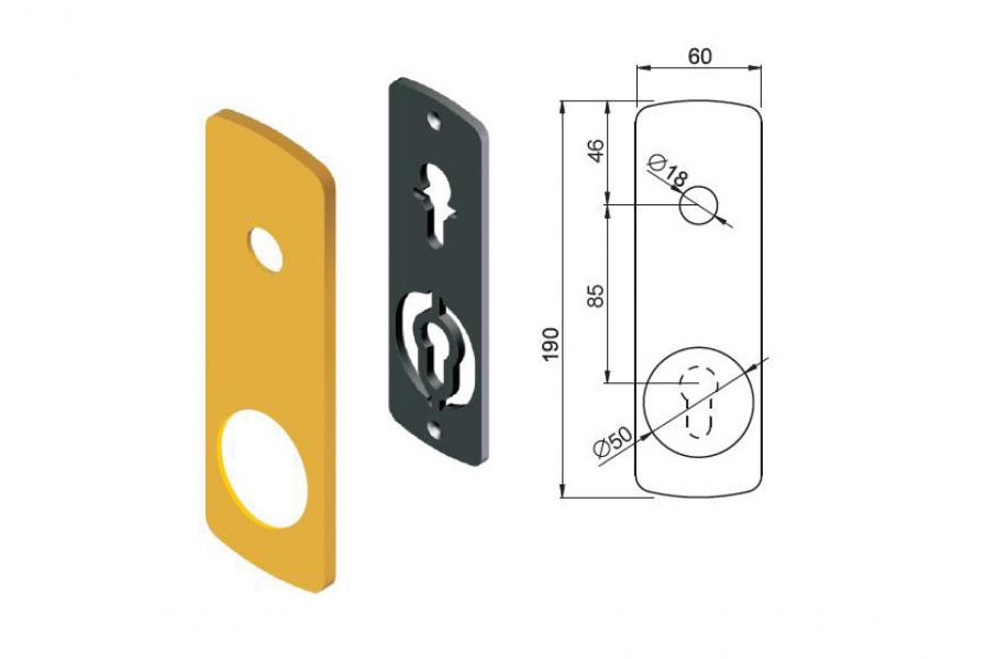 ΣΧΟΛΙΑ:Το κάλλυμα του κυλίνδρου είναι φτιαγμένο από βάση πλαστική για τις κλειδαριές κυλίνδρου στις οποίες έχει τοποθετηθεί defender των 50,2mm διαστάσεων.Είναι μονοκόμματο και βρίσκεται στο εξωτερικό μέρος.Το φινίρισμά τους είναι διαθέσιμο στα εξής χρώματα: bronze, gold και νικέλ.